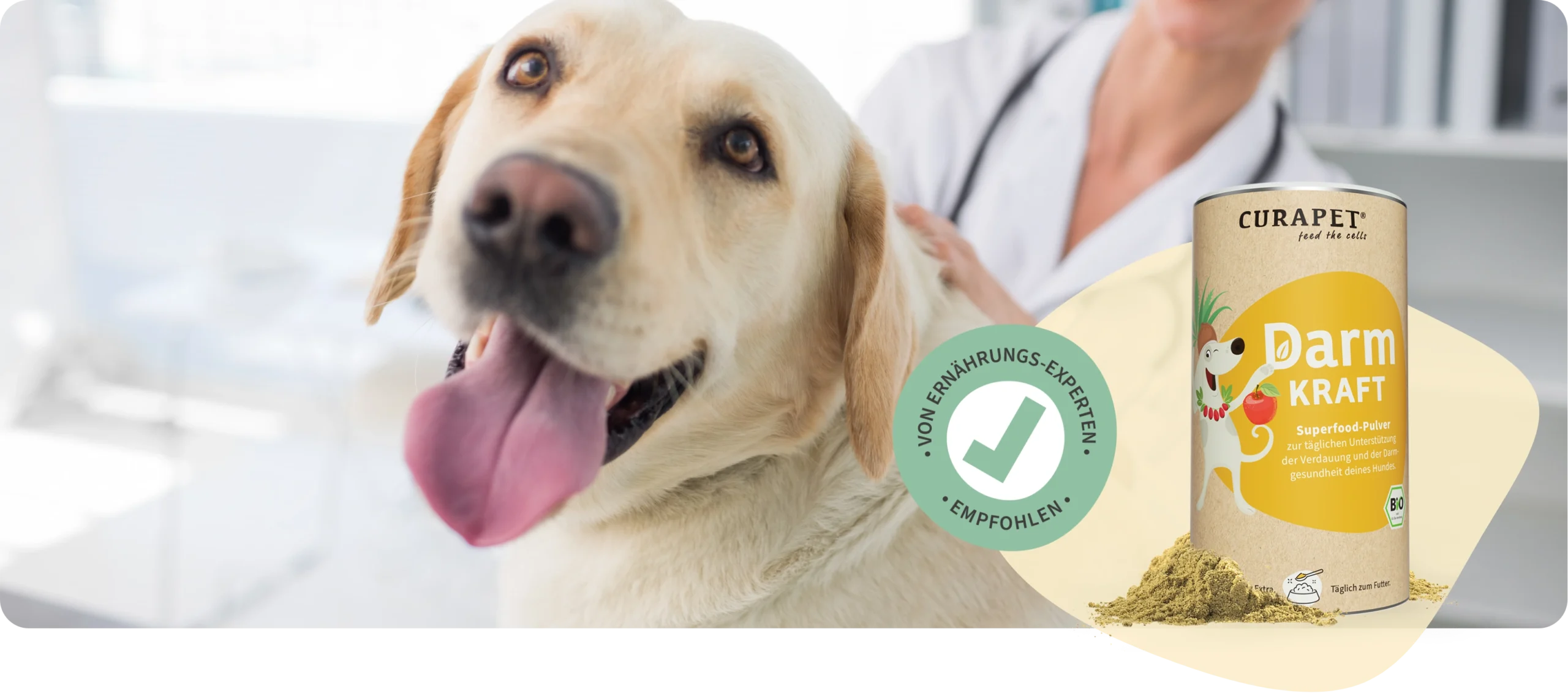 Tierärzte, Ernährungsberater und Tierheilpraktiker empfehlen gegen Durchfall DarmKraft von CURAPET